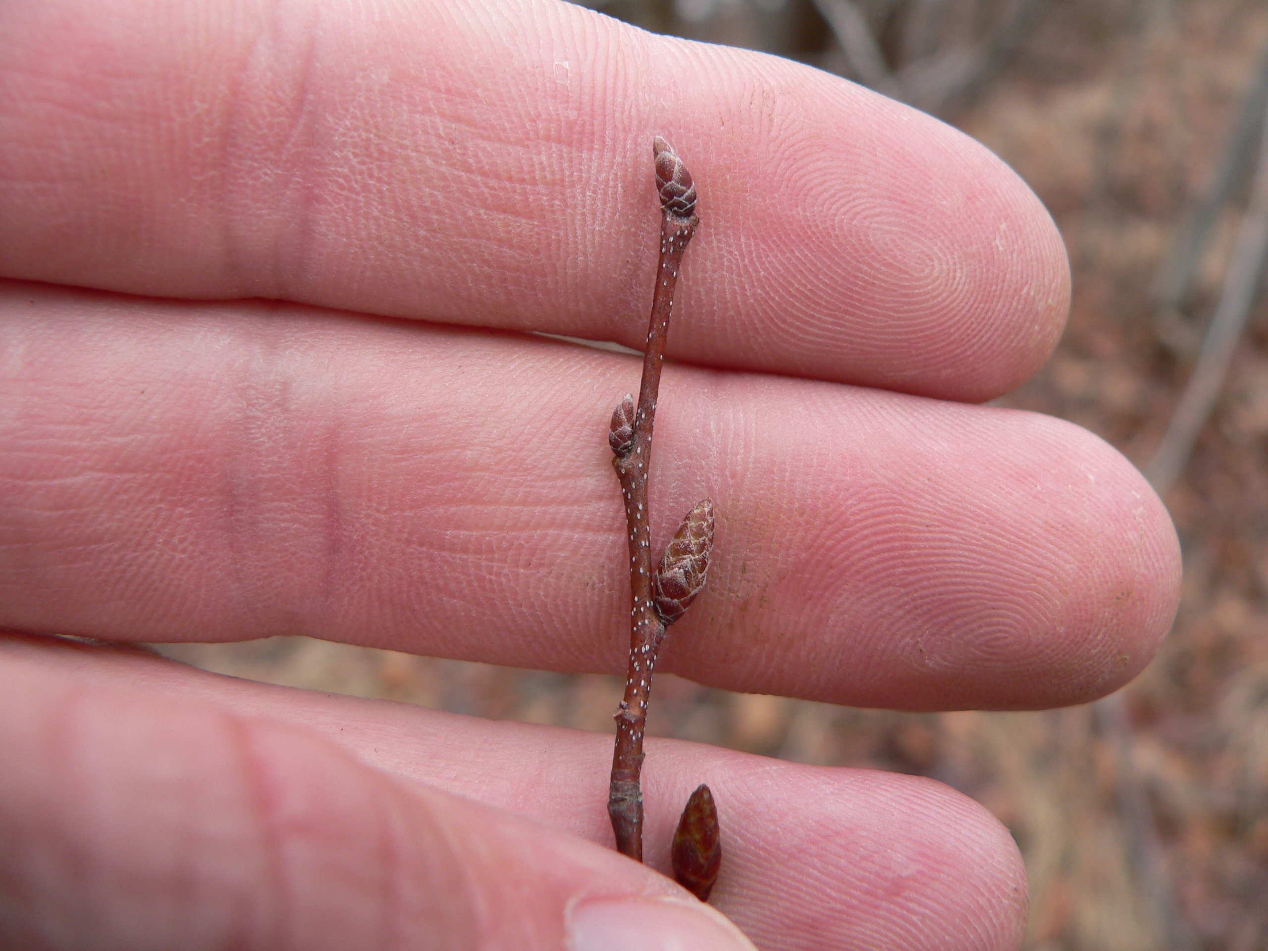 and its buds don't point away from the twig as much. Also, the buds usually have a few more